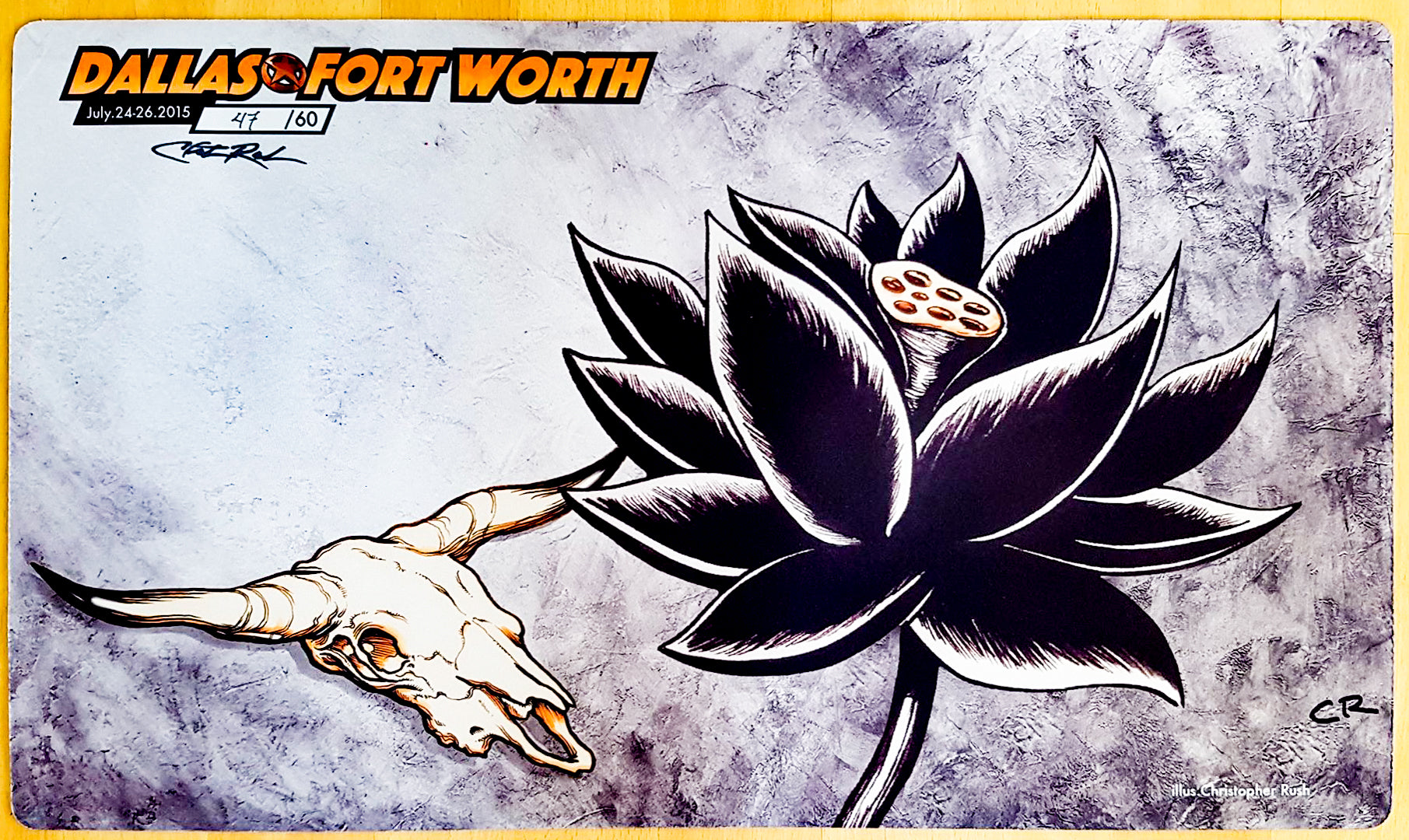 Black Lotus & Bull's Skull - Christopher Rush - Gran Premio Dallas-Fort Worth 2015 - Firmado por el artista - Edición limitada - MTG Playmat