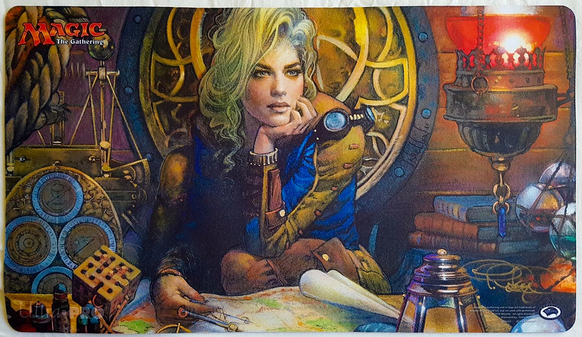 Este artículo es un tapete de juego de Magic the Gathering que presenta la obra de arte Hanna, Ship's Navigator de Terese Nielsen que apareció originalmente en Judge Gift Cards 2014 .