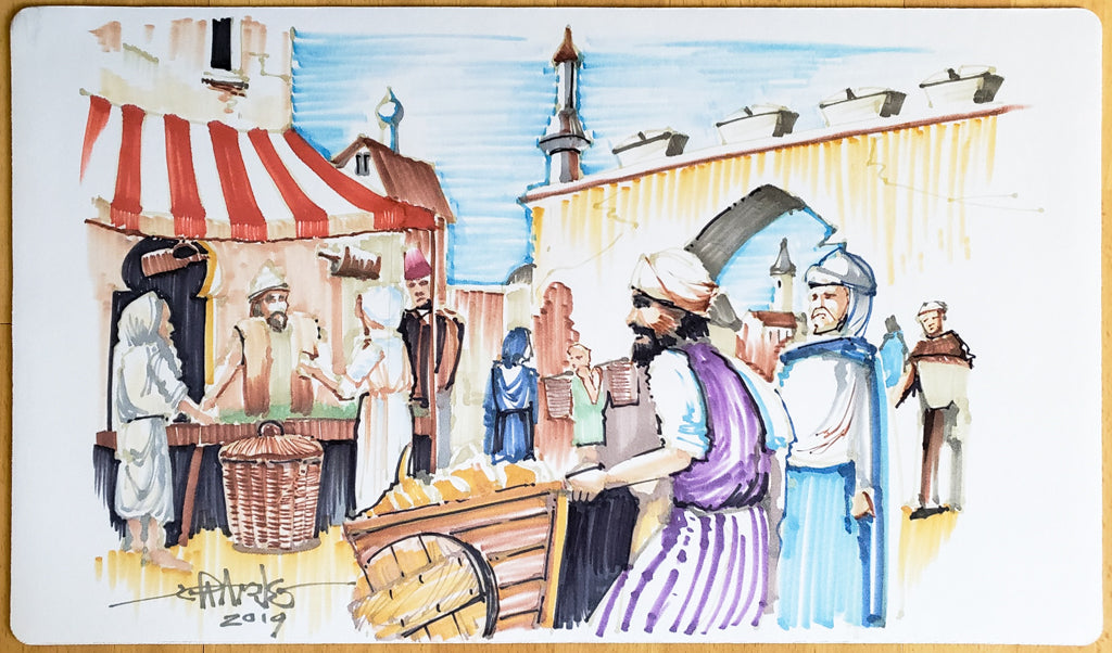 Bazaar of Baghdad - Jeff A. Menges - Disegnato a mano e firmato dall'artista - Tappetino da gioco MTG