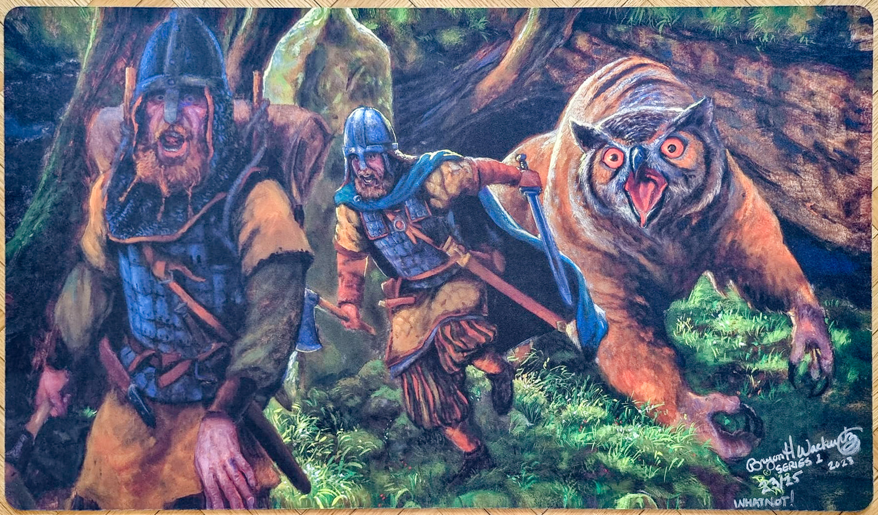 - Illustrazione di Bryon Wackwitz: questo tappetino da gioco mostra la scena vibrante e dettagliata di un incontro inaspettato e divertente, abilmente portato in vita dall'artista Bryon Wackwitz . La vivace raffigurazione cattura l'essenza del fantasy e dell'avventura, rendendolo un'aggiunta perfetta per qualsiasi appassionato di giochi.
