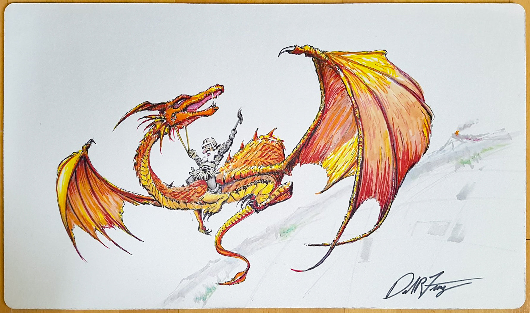 Nano che cavalca un drago - Dan Frazier - Firmato dall'artista - Disegnato a mano - Tappetino da gioco MTG