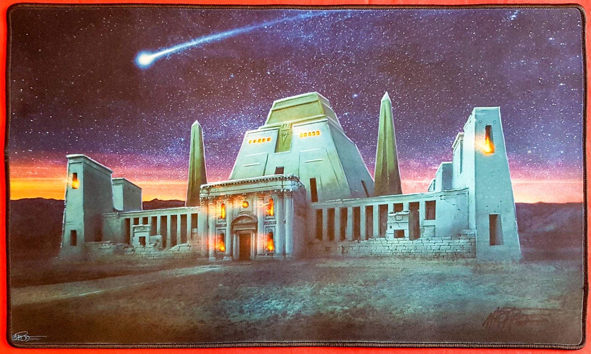Questo articolo è un tappetino da gioco di Magic the Gathering con un'opera d'arte rivisitata della Biblioteca di Alessandria dell'artista Mark Poole , originariamente presente in Arabian Nights . L'artista ha chiamato l'opera Library Nocturna .