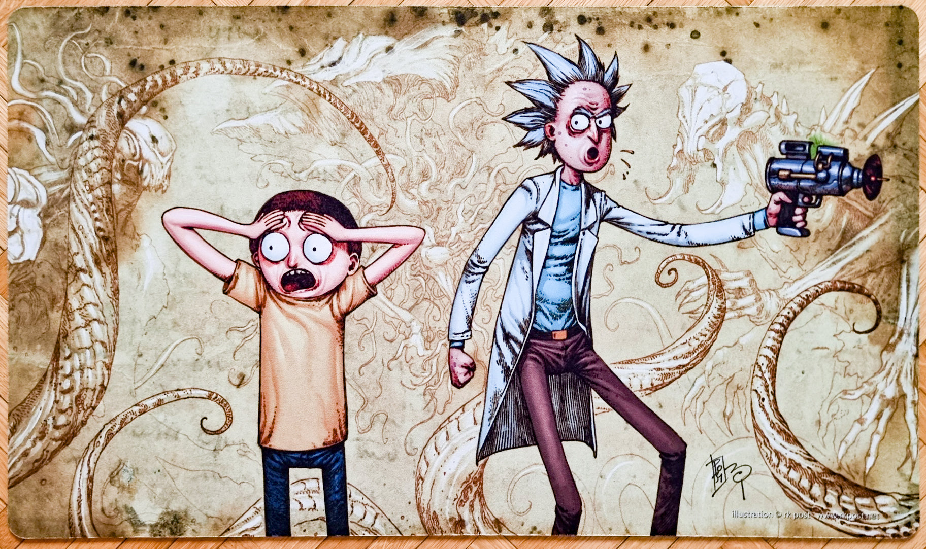 RnM vs E - Rick and Morty [Borderless version] - rk post - Signed MTG Playmat