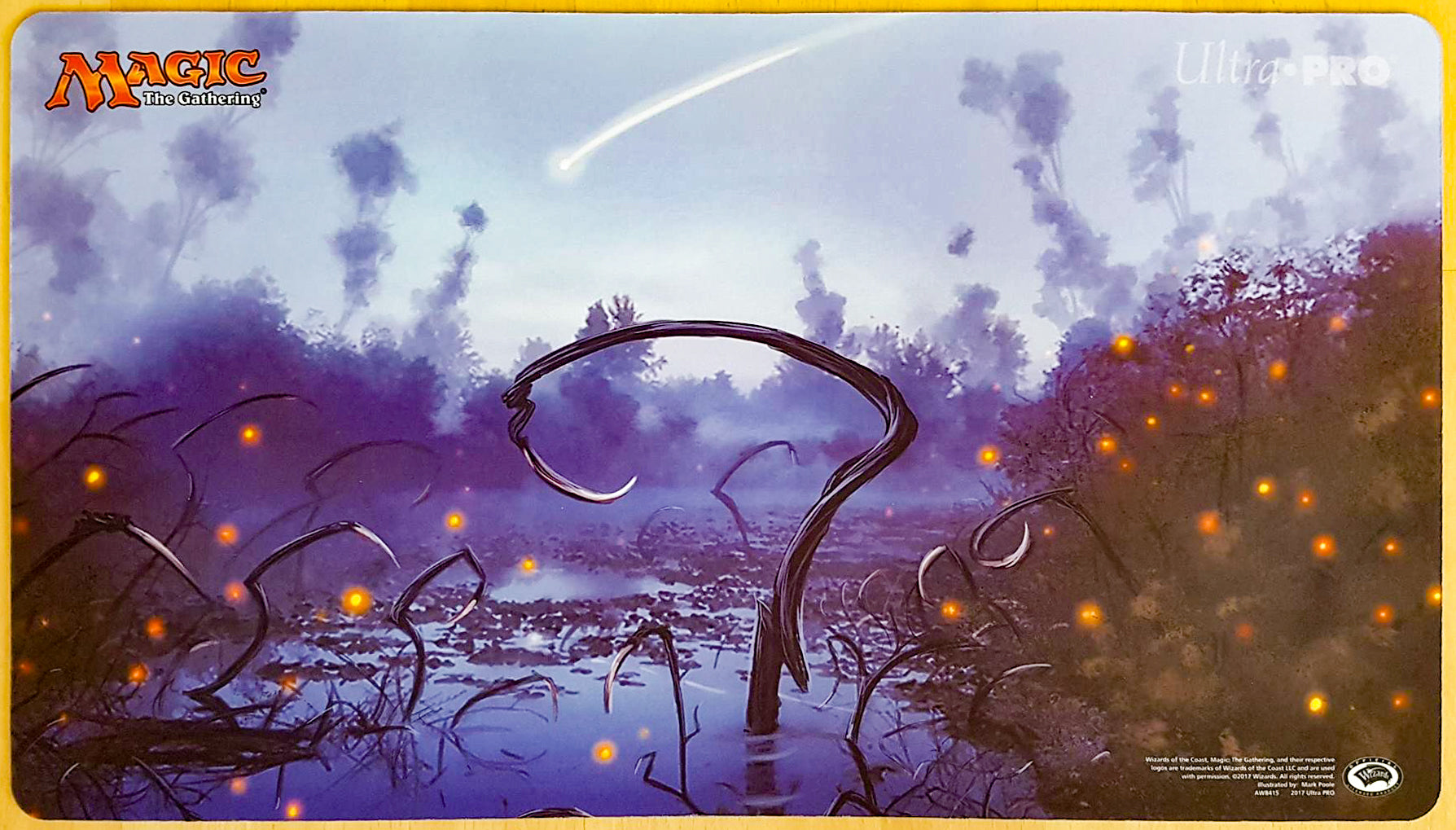 Questo articolo è un tappetino da gioco di Magic the Gathering con l'illustrazione Swamp di Mark Poole originariamente apparsa in Commander 2016 .