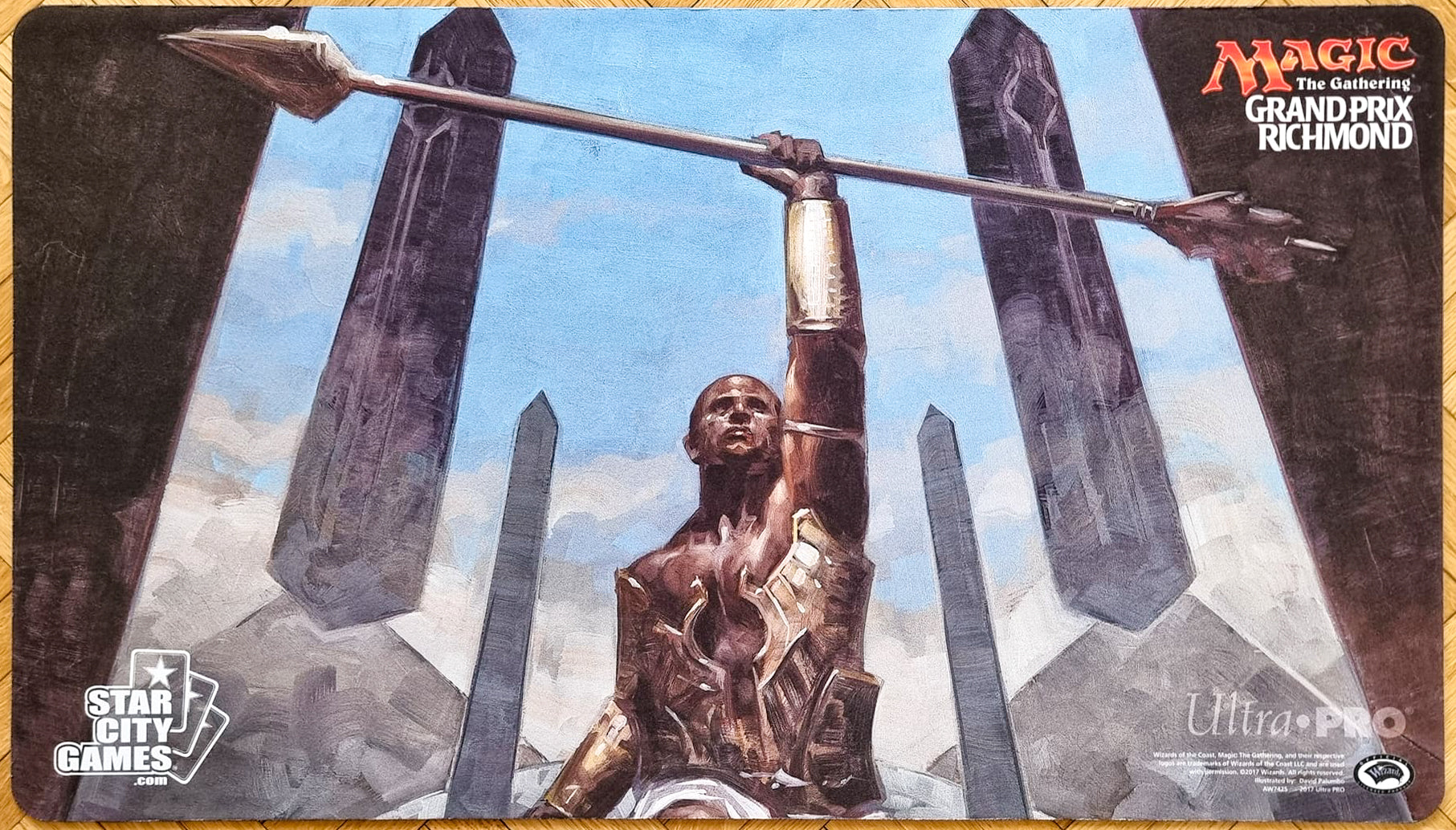 Showcase the resolute strength and devotion of Amonkhet with this exclusive Glory-Bound Initiate Playmat, designed for the Grand Prix Richmond 2017.