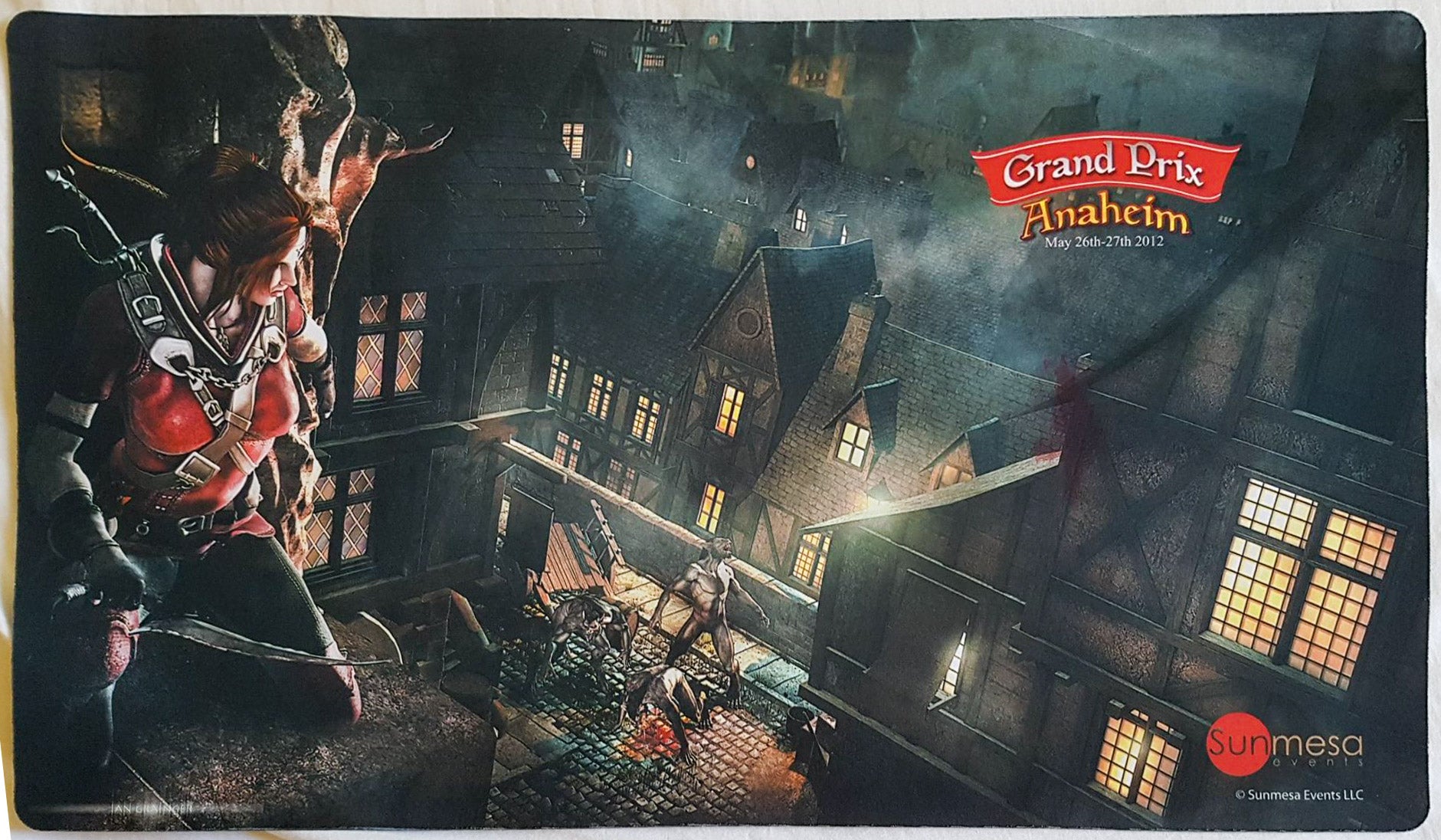 This item is a Magic the Gathering playmat, from the Grand Prix Anaheim 2012, featuring custom art created for the event.
