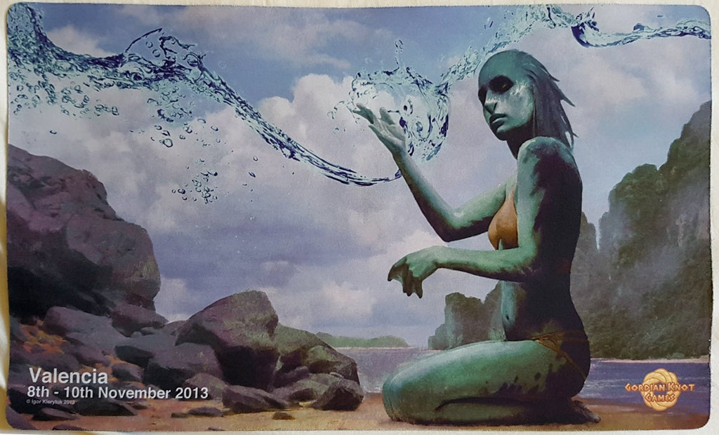 This item is a Magic the Gathering playmat, from the Grand Prix Valencia 2013, featuring custom artwork for the event.