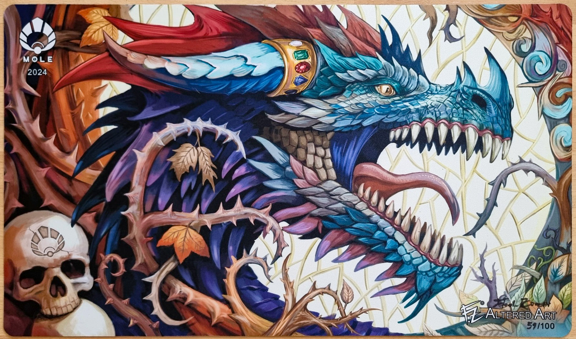 Featuring bold colors, tangled thorns, and a jaw-snapping dragon centerpiece, it’s an unforgettable addition to any collector’s hoard.