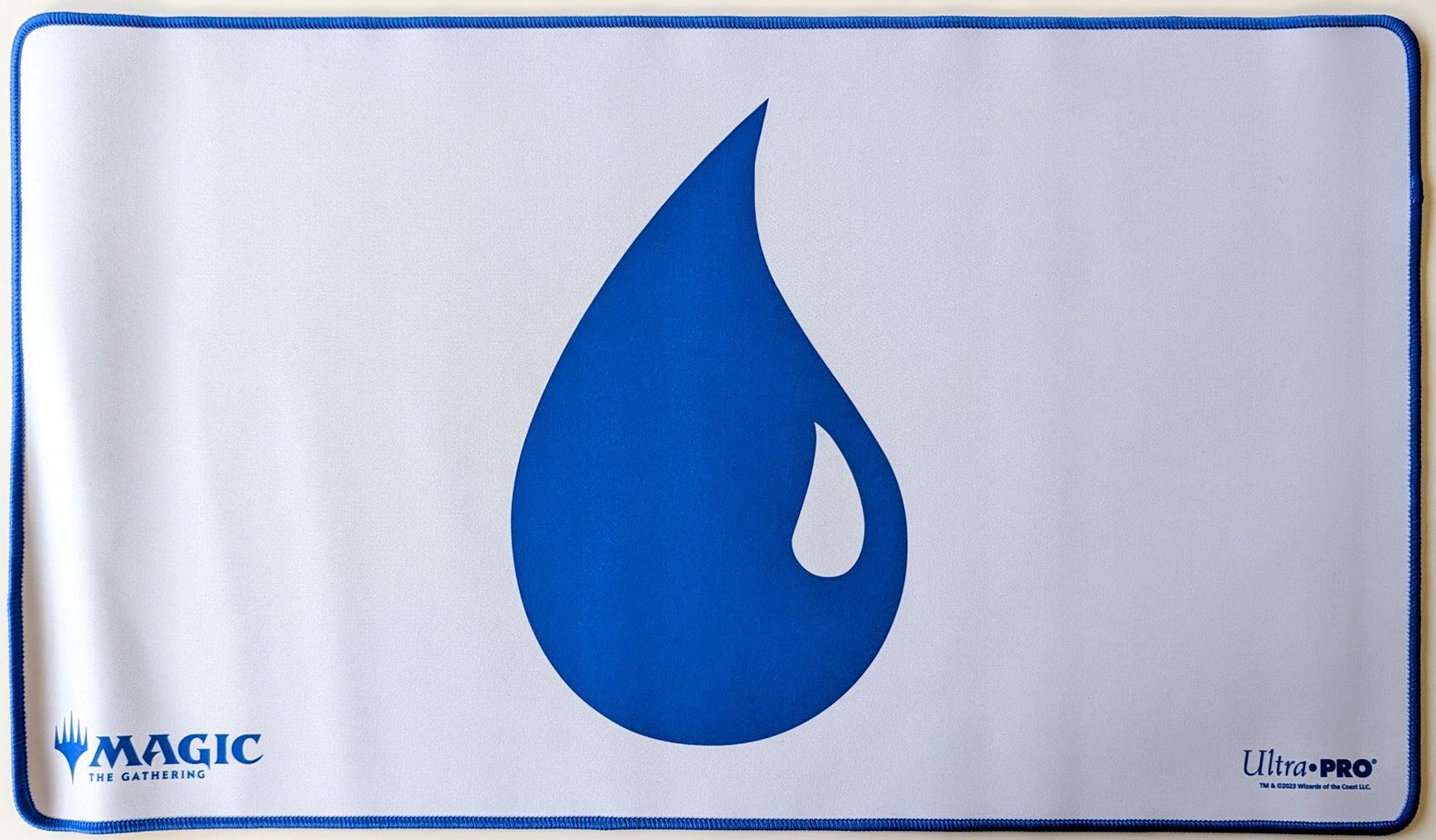 Celebrate the essence of blue mana with this minimalist Ultra PRO playmat from the Mana 8 series. Featuring the unmistakable Island water droplet symbol in bold blue over a crisp white background, this design perfectly embodies clarity, intellect, and control — the core traits of Magic’s blue mages.