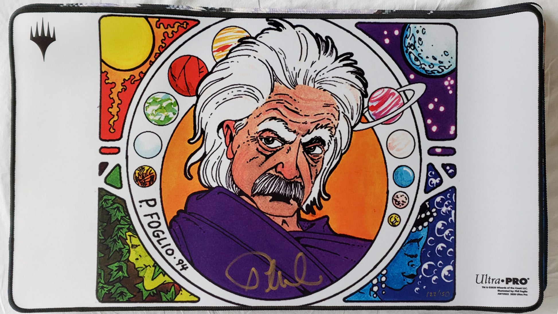 This MTG playmat has been signed by Phil Foglio and is, thus, very rare.