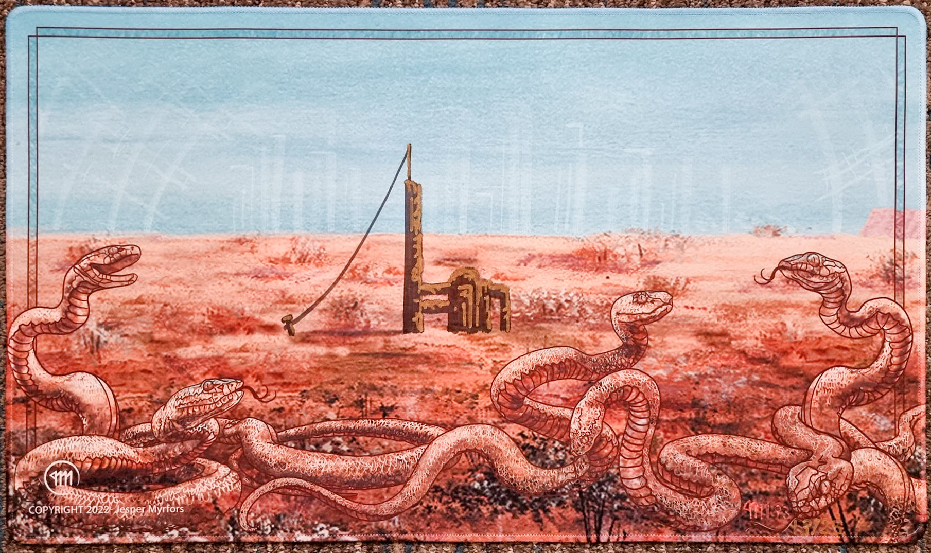This playmat is part of an Artist Proof Limited Edition of only 25 playmats, uniquely sketched by the original artist and with a special snakes design. This listing is for the playmat number 13.