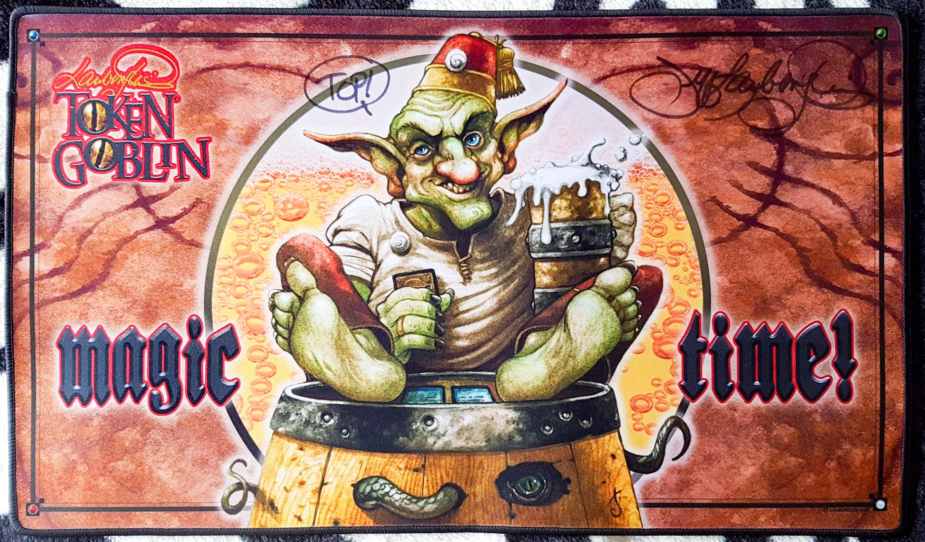 Token Goblin - Magic Time! - Jeff Laubenstein - Signed by the Artist - Embroidered - MTG Playmat